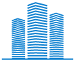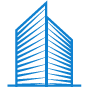 Line drawing of a tall, cylindrical office building with horizontal lines indicating windows
