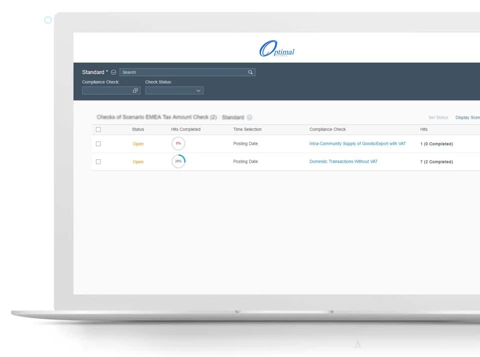 Screenshot of a digital compliance check interface showing two checklist items for tax error checks with open status and progress bars.